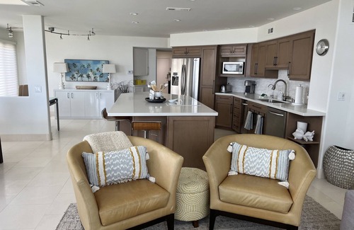 Our home is tastefully designed with thoughtful attention to detail. Enjoy endless sunsets and expansive ocean views. Boasting nearly 1,700 square feet of living space that features 2 bedrooms, 2 full baths, a fully stocked kitchen with all SS appliances, and pantry. Enjoy views of the Pacific ocean while preparing meals in the kitchen, enjoying a meal in the dining room or just hanging out in the living room. Your own washer/dryer, highly desired garage parking, and high-speed WIFI all included.