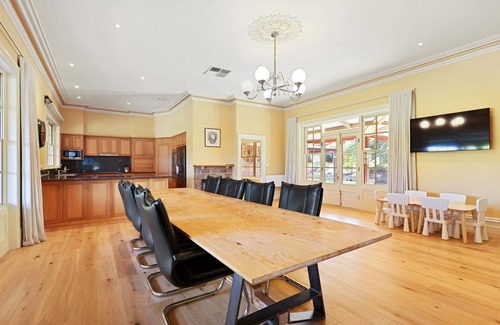 Finish and trim abound to herald the property's heritage including numerous traditionally open fireplaces, whilst modern, luxurious comforts surround you, quietly and efficiently with ducted evaporative cooling and zoned floor heating. Five bedrooms and four tastefully appointed bathrooms, including master bedroom and guestroom ensuites complete the substantial residence as the central hub of this notable landmark property.