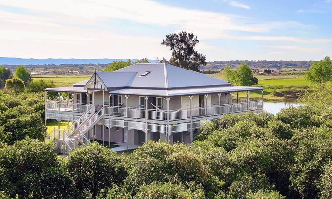 Situated on a quiet country lane with no through traffic, and hidden amongst a working orange orchard on the banks of the tranquil Hawkesbury River you will find Cornwallis House, a luxurious holiday home and wedding venue, ideal for those looking to find a unique location to have a getaway with family and friends or garden or country style wedding /event.