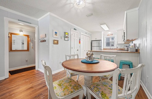 Updated with unique touches, this condo is perfect for couples or a small family with young children on a budget. The living area has a large flat-screen TV for streaming your favorite programs with high-speed internet service. The kitchen has stainless steel appliances, granite counter tops and a pod coffee maker. The dining table seats 4 and the bar counter seats 3.