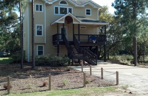 This well maintained home is located on a private unpaved road that leads directly to beach access. Enjoy the natural surroundings and roomy floor plan of this beautiful Oceanside home on the public water system! Our home is near historic CV and within Corolla Village, CV. Close walk to see sound side views yet located on Oceanside with a private beach private road setting. Short direct walk to beach. You can see the entry to the beach from our driveway. Enjoy our home (A Stone Throw)!