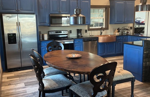 This is the most luxurious barndominium you will ever see! The structure is set on top of a hill with a gated access to apartment. This private and secure space will be your home away from home. It is perfect for extended stays or just a getaway weekend. This location is very private and only 4 miles from downtown Campbellsville. The beautiful kitchen is fully furnished with all your cooking needs. You will love the views of beautiful farmland everywhere you look. Fast WIFI and lots of parking.