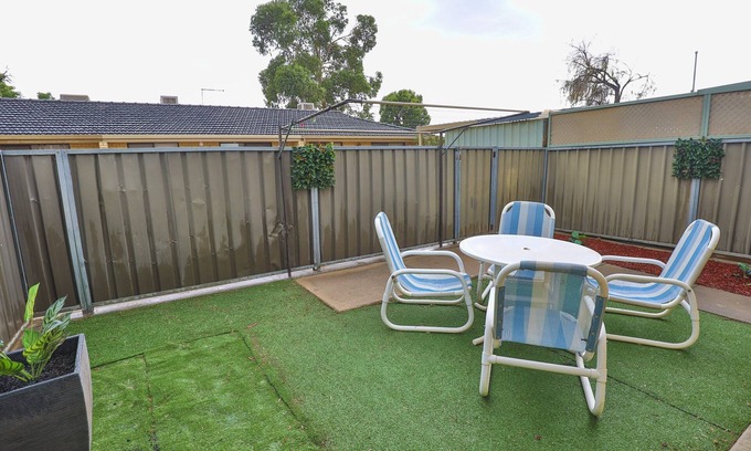 Newly renovated and specialising in weekly & monthly stays. Designed with the corporate traveler in mind, quiet, spacious and family friendly. Our executive apartments have 2 queen bedrooms, fully appointed kitchens with full oven, dishwasher & all utensils. Purposely designed to accommodate working colleagues for longer stays with a Queen bed in each bedroom . Quiet locations, with private courtyard. Undercover, off street parking. Fully fenced, gated and sheltered rear courtyard, could accommodate a pet if required.Walking Distance to Aldi Supermarket, Mildura Central Plaza & Mildura Gateway Tavern, serviced weekly, Free wifi