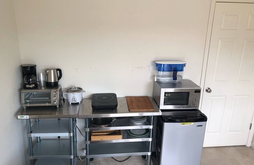 Appliances: all new stainless steel appliances. 1 full size refrigerator, 2 mini frigs, dish washer, 2 range-hoods, 3 microwaves, 3 oven, 4 induction cooktop hotplates, coffee maker... washer, dryer.