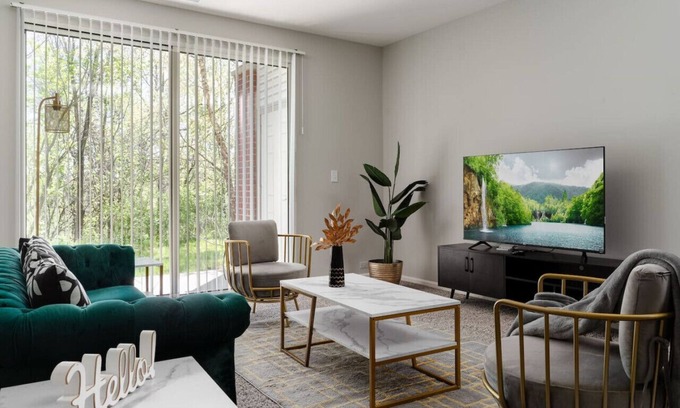 Welcome to our serene 2-bedrooms, living room, kitchen, and laundry. The whole group will be comfortable in this spacious and unique space. Sit out and enjoy nature on your private patio. Suitable for business travelers and remote workers, Fast Wifi. A full kitchen or enjoy a long list of local places to eat out. There is laundry in your apartment for your convenience—great Space for traveling Consultants and perfect for longer stays.