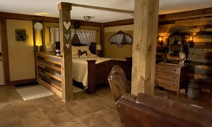 Come enjoy a spacious country atmosphere that is just minutes away from the City. This freshly renovated, charming, country cottage, provides all the comforts of home with none of the hassle. With your own private courtyard just steps away, you can enjoy a beautiful sunset, relaxing in a hammock or an entertaining game of corn hole. This property is less than a minute away from the highway, providing you with quick access to all the local attractions.