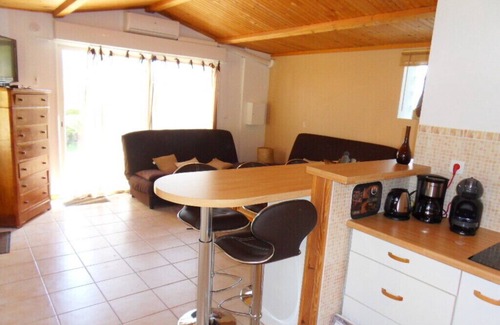 The studio consists of a large room of 35 m² air-conditioned with a kitchen area (sink, fridge, dishwasher, oven, microwave, hob ...) a lounge area (two cliclacs, two buffets and dining area, tv ... and a bathroom (wc, multi-jet shower, sink, washing machine);