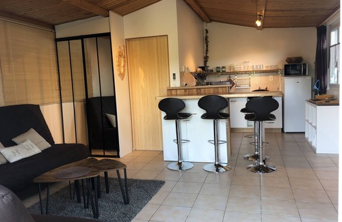 Your charming studio of 35 m2, equipped with wifi, is located in a 2200 m2 property with trees and fully fenced, in the heart of a pretty village located halfway between the sea and the mountain at 400 m altitude