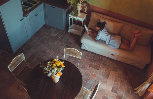 This exclusive stone farmhouse is located within the Tenuta Giuliva organic farm of about 25 hectares, with spelled and olive crops, with large wooded areas suitable for your walks. A green territory of thousands of hectares surrounds the estate, where a unique nature reigns and the small roads that cross it allow unforgettable excursions!