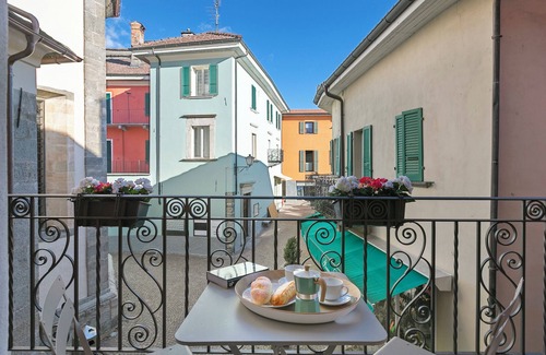 Corte di Ascona 2 accommodates up to 4 guests and is quietly nestled on the second floor of a modern four-story building. Accessed through a historic courtyard this charming, dual-aspect escape features two sunny balconies with views of the cobbled streets and lake shore.