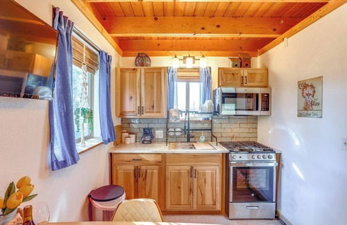 Fill your cup with a restful retreat to the 'Casita at Bella Vista Ranch,' a unique 1-bath studio in Cortez, CO. Seeking adventure? You'll find no shortage of them here, with Mesa Verde National Park just a short drive away and local trails even closer. In between tours of ancient cliff dwellings, soak in all that this relaxing vacation rental has to offer, like the vast scenic views and private hot tub.