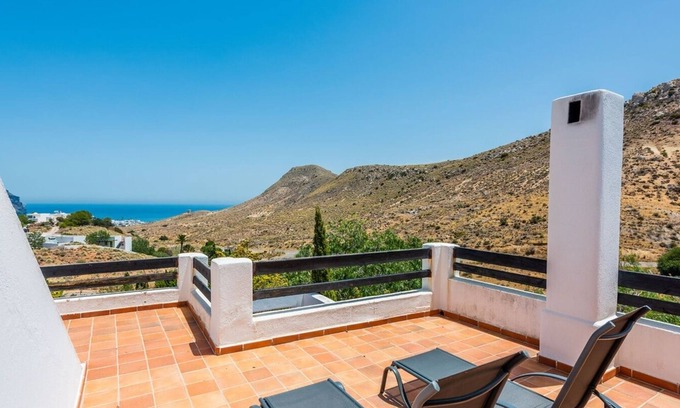 Cozy house with two bedrooms, one of them equipped with a double bed and the other with 2 single beds, two bathrooms with shower, an open-plan kitchen, living room and dining room. It has fabulous terraces with views of the sea and the white town of Níjar, where there are sun loungers for sunbathing. It also has a beautiful private patio with outdoor dining.