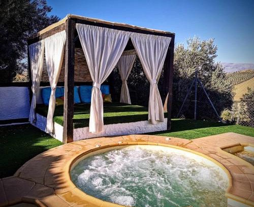 27 miles from Granada Train Station in Villanueva de Mesía, Cortijo Rural Español Ideal para desconectar! provides accommodations with access to a hot tub. This country house features air-conditioned accommodations with a terrace. Monasterio Cartuja is 27 miles away and Basilica de San Juan de Dios is 28 miles from the country house. With free Wifi, this 6-bedroom country house offers a TV, a washing machine, and a fully equipped kitchen with a dishwasher and stovetop. There's also a seating area and a fireplace. There is a snack bar and bar. Granada Cathedral is 29 miles from the country house, while Granada Science Park is 29 miles away. Federico Garcia Lorca Granada-Jaen Airport is 16 miles from the property.