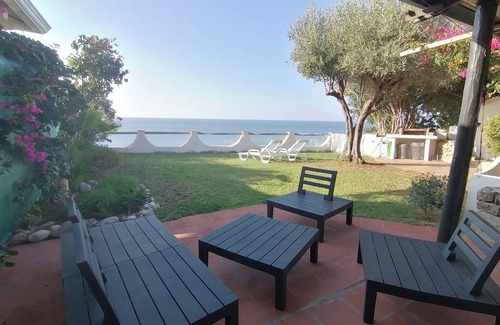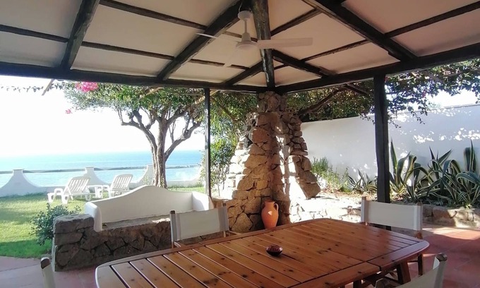 The suggestive pergola communicating with the delightful garden overlooking the sea allows you to enjoy a breathtaking view of the island of Stromboli at sunset.