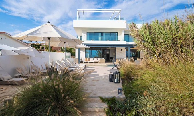 Experience the ultimate beachfront escape in this exquisite villa located directly on the golden sands of Costabella, Marbella. Designed by renowned architect Jose Carlos Moya, this sophisticated six-bedroom retreat combines cutting-edge architecture with understated elegance, offering a truly luxurious stay on the shores of the Mediterranean.