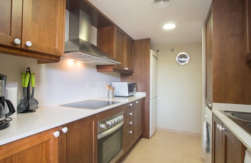 The apartment size is 90 m² for up to 6 people. Provides, among other amenities, air conditioning, terrace, solarium, communal garden (1,000 m2), saline clorination swimming pool (16x8) and private parking.
