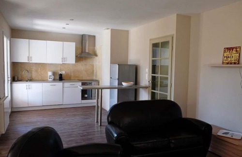Our 90 m² house is modern and bright. She is very pleasant to live with. It has 3 bedrooms, 1 fully equipped kitchen (oven, ceramic hob, dishwasher, extractor hood, fridge) leading to an open living room of around 25 m².
