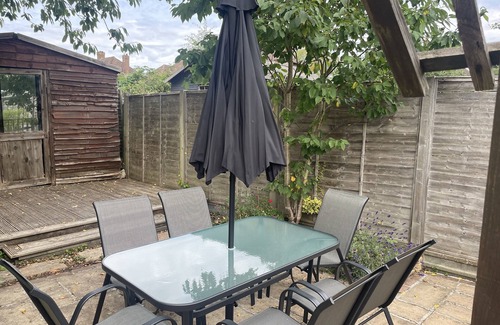 A traditional 2 bedroom terraced cottage built in 1860 in the historic & very pretty Surrey village of Godstone. The village features in the Doomsday Book and was once a stopping off point for royalty traveling from London to the South Coast. It has many quaint old buildings and a traditional village green complete with duck pond. There are 4 attractive pubs in the village, a cafe, tea rooms, a post office, small food shops, antique and gift shops, a chemist and a farm shop selling locally produced meat and vegetable, plus a Tea Room. it is 3 miles from Oxted town which has a large supermarket, shops and a great selection of pubs & restaurants. There are some lovely local walks in the area and it is ideally located for exploring Surrey and Sussex and also has easy links by train to central London and easy access to the M25 motorway. Gatwick airport is a 15 min drive from the house and Heathrow airport is approx 30 miles via the M25 motorway. The house has an enclosed porch with cupboard, coat hooks and shoe storage space leading to a cosy sitting room with fireplace, bookcase, sideboard, side tables, internet, gas central heating and 40" wall mounted flat screen Smart TV. There is a large very well equipped kitchen diner with electric cooker and hob, microwave, slow cooker, sandwich toaster, coffee machine, mixer, hand blender, dishwasher, washing machine and tumble dryer. We have equipped the house as our second home and provide plenty of crockery, cutlery, glasses, and cooking pans. You will enjoy our luxury downstairs bathroom with his and her sinks and fabulous shower/bath. Upstairs there is a double bedroom with king size bed and cotton bedding, wall mounted smart TV and plenty of wardrobe space and a very small single bedroom equipped with bunk beds (suitable for 1 adult on the bottom) and a chest of drawers. There is a handy second toilet with sink upstairs. The house is best suited to 3 guests, although 4 can be accommodated. Please note that the house is not equipped for very small children and isn’t suitable for children under 3 due to the open stairs. The house is set back from the road with a long front garden and another enclosed garden to the rear of the property which has a small deck, stone patio and large table with 6 chairs and garden umbrella. There is plenty of free on and off road parking in the side turning next to the house, this is unrestricted and a cul-de-sac.