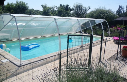 but best of all a private pool, suitable for young and older children and adults, to play relax, it as a cover to keep the sun off in the heat of the day, and can be closed to protect from the rain if it come when you stay!!!! (fingers crossed it stays away)