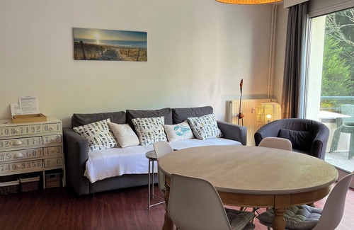 Near the center of Hardelot (1,5 km), in a green setting with the park, tennis ... Beach 10 minutes walk. You will appreciate this apartment for the calm and the comfort of the places, the easy access to the bar and restaurant of the hotel is a plus.