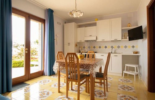 Residence "Podere Sul Mare" is a vacation rental property featuring 6 houses spread across 2 floors. It boasts a well-maintained garden lawn spanning 1,000 square meters, a seasonal swimming pool (55 square meters, open from March 29 to November 3), a terrace, and on-site parking facilities. The property offers amenities such as a yard, internet WiFi, and the option of an installment plan.