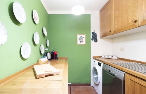 The apartment comes equipped with a small, open kitchen featuring an oven, dishwasher, four induction hot plates, a toaster, kettle, electric coffee machine, and complimentary Nespresso capsules for the coffee machine. Additionally, you'll find a washing machine, hair dryer, and free Wi-Fi internet access. The apartment has two bathrooms, one with a bath/bidet/WC and the other with a shower/bidet/WC. Heating is available throughout the unit.