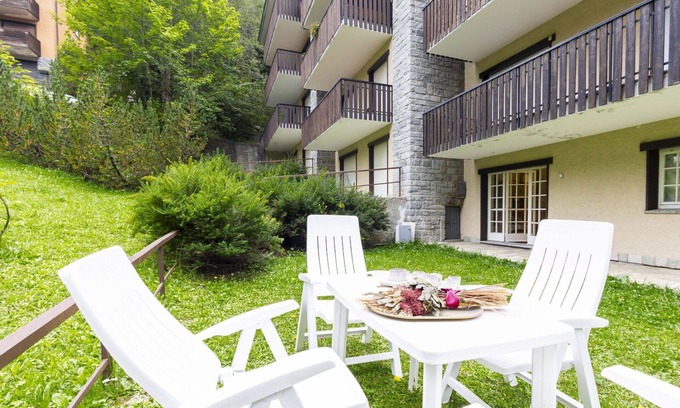Bernasconi Garden Flat is a small apartment house located in Madesimo, Italy, at an altitude of 1,600 meters above sea level. The property features four stories and offers a private garden of 100 square meters, complete with trees and a lawn area for sunbathing. It is conveniently situated 300 meters from the center of Madesimo, in a quiet and sunny residential district along a wooded area. The vacation rental is just 600 meters away from the skiing area, making it an ideal choice for winter sports enthusiasts. Guests can enjoy amenities such as a yard, internet WiFi, and parking facilities.