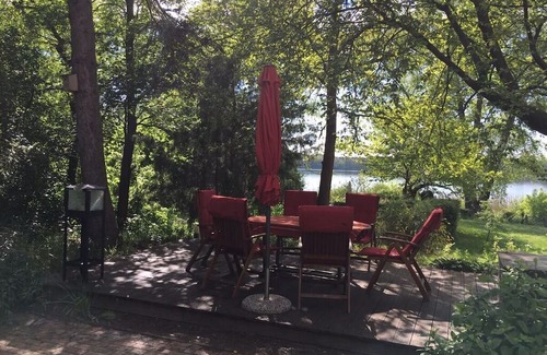 The largest of our three apartments in the villa on Wendsee: Maisonette apartment, approx. 170 sqm for 4-6 people on the ground floor/1st floor has a winter garden, direct garden access, own sea view terrace and two bathrooms. At http://www.villaam-wendsee.de/maisonette_wohnung.htm you can see photos, floor plans and descriptions. There are two classic bedrooms with a double bed, a living room with a comfortable sofa bed and another room ("library") with futon sofa. Our listed villa on the lake has three beautiful apartments on a total of 400 sqm living space, all certified with 4 stars - directly on the water surrounded by a large tree -rich garden. A romantic holiday paradise for 1-12 people. We also have a holiday home in the Lake Constance region near the Swiss border: Alpen Panorama on the Hochrhein www.facebook.com/alpenpanoramaferienhaus