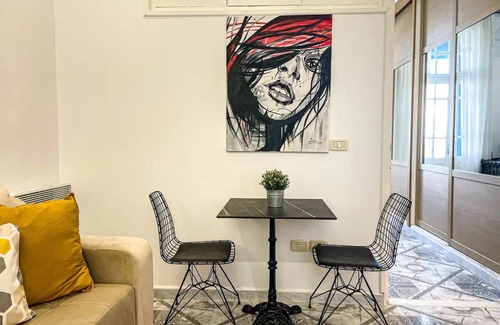 The apartment is independent. Has a living room, a large bedroom (with a queen size bed), a balcony, a well-equipped kitchen and a bathroom with shower.