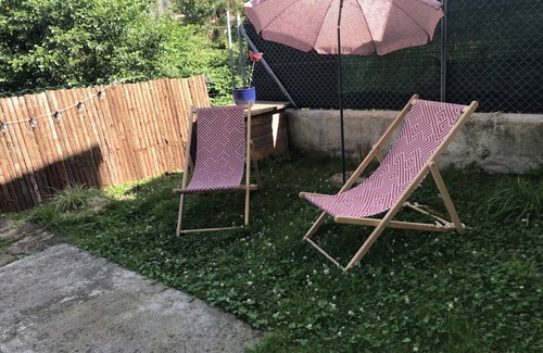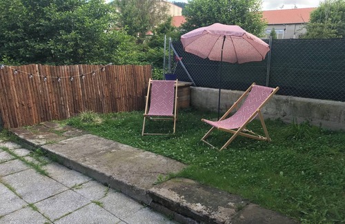 Relax in the garden (enjoy the outdoor furniture!) of this apartment. For a change of scenery, come inside and enjoy the free WiFi and TV.