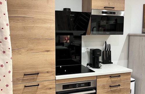 The cozy apartment, decorated in a Savoyard style, consists of a living room with a TV (WiFi via Orange + Canal+), a kitchen with a central island (with electric oven, microwave, dishwasher), a master bedroom with a 160 x 200 bed (with TV), a children's room with bunk beds (mattresses 80 x 190), separate toilets, a large closet in the hallway for coats and shoes, and finally a bathroom with a large shower, a washing machine, and plenty of storage.
