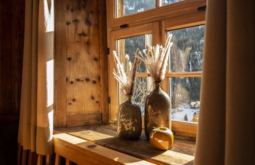 The living room of this apartment is designed as a cozy farmhouse lounge, adding to the rustic ambiance. Outside, you'll find a terrace spanning 30 square meters with east and south-facing positions, perfect for enjoying the marvellous mountain views. Please note that this is a non-smoking property, and animals are not allowed. To enhance the tranquil experience, there is deliberately no TV in the apartment, although one is available in the common lounge area.