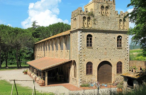Nestled in a secluded area, Agricultural estate ''Villetta di Monterufoli'' provides a serene escape amidst nature. Surrounded by lush greenery, including trees, meadows, fields, and vineyards, the estate offers a peaceful retreat for outdoor enthusiasts. Relish the opportunity to explore the vast 900 hectares of land and immerse yourself in the natural beauty of the Tuscan countryside.
