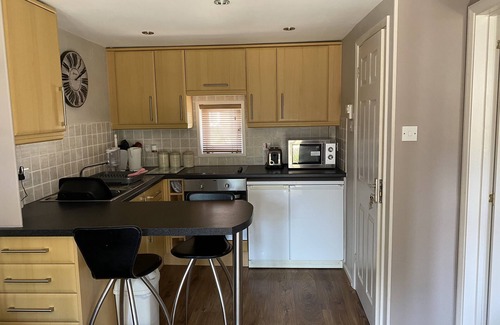 Fully equipped Kitchen/Diner, Breakfast Bar and Stools, built in Hob/Oven, Microwave, Fridge/Freezer