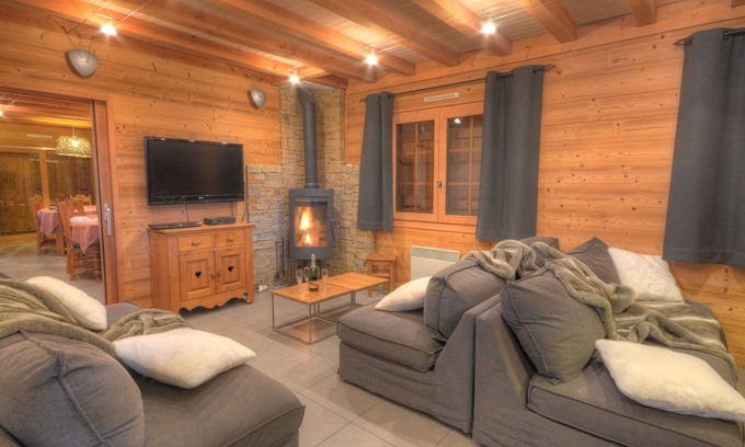 Cosy and very comfortable chalet of 300 square meters total space with 8 bedrooms, 8 showers, garage for 4 cars with electric doors + parking, 1 sauna (real Tylo Finish sauna), 1 table soccer (the real one like in French cafés), 2 fireplaces, Internet with WIFI, 2 107 cm flat screen TV with satellite, 2 fully equipped kitchen (2 dishwashers, 2 ovens, 2 microwave ovens, 2 refrigerators).