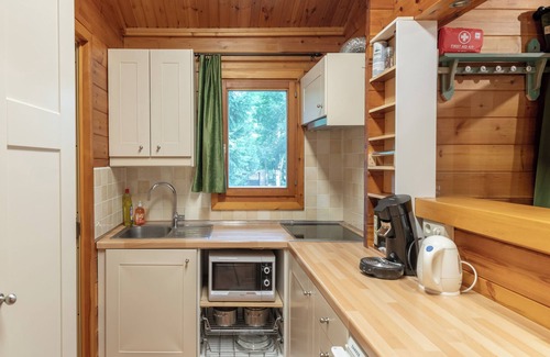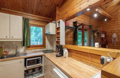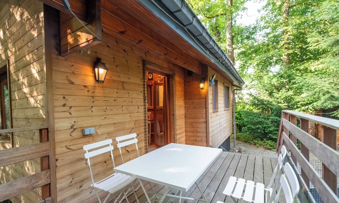 Cosy chalet for 2 people (plus 2 children), ideal for a romantic or family stay. Enjoy an enclosed garden with front and back terrace, garden furniture and bicycle storage. Inside you will find a cosy living area with wifi and TV, equipped kitchen, bathroom with shower, and a bedroom with double bed. Extra children's room with bunk beds (180x80) on request . Private parking for 2 cars included