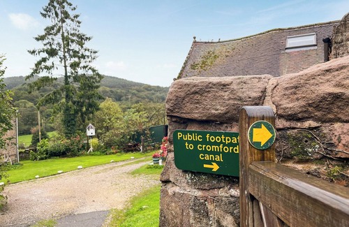 Shower Room: Cubicle Shower, Toilet. Gas central heating, gas, electricity, bed linen, towels, Wi-Fi and fuel for wood burner included. Front garden with outdoor furniture. Bike store. Private parking for 2 cars. No smoking. Please note: No children under 5 years old. This property is located on a working farm.. Nestled along the picturesque Cromford Canal towpath this delightful two-bedroom cottage, attached to the owners’ farmhouse, is the perfect retreat for up to three guests, offering a cosy and tranquil escape from the hustle and bustle of everyday life. The cottage features two inviting bedrooms, thoughtfully designed to provide a comfortable night’s sleep. One bedroom is furnished with a kingsize bed, while the other offers a single bed, making it ideal for a small family or a group of friends. Please note to get to the single bedroom you must walk through the master bedroom. On the first floor is also a shower room which is spacious and light. The heart of the cottage is the open-plan living area, which seamlessly combines a cosy lounge, a well-equipped kitchen, and a welcoming dining space. The comfortable seating area invites you to unwind, and a wood-burning stove adds warmth and character to the room, perfect for chilly evenings. To the front of the property is a lawned garden area with a bench, plus there is a shared utility room available to all guests.