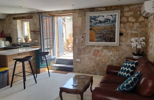 Located in a pretty Dordogne village, this converted barn is the perfect getaway for couples and single travellers. The bakery is a 2 min walk as is grocers, pharmacy, butcher and bar/restaurant. The popular destinations of Brantome and Aubeterre are an easy drive, as are the cities of Périgueux and Angoulême. Accommodation is an open-plan kitchen-sitting room and first floor bedroom with ensuite shower. Private south facing courtyard with secure storage for bikes. Not suitable for children.