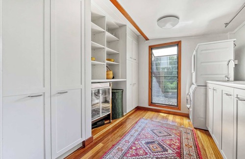 Set on a secluded mountain ridge, this property greets you with sweeping views of the Conondale Range. In the heart of the home lies a spacious open-plan kitchen and dining area, featuring a large oak table and a cosy wood-burning fireplace perfect for cosying up in winter. Bi-fold doors open onto a cabin-style balcony, perfect for alfresco dining with panoramic views and a Webber gas BBQ. The country style kitchen is fully equipped with a Viking Range, twin Miele dishwashers, a Nespresso coffee machine, and a double-door fridge, plus plenty of bench space for cooking up a storm on holidays.