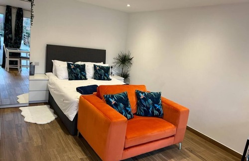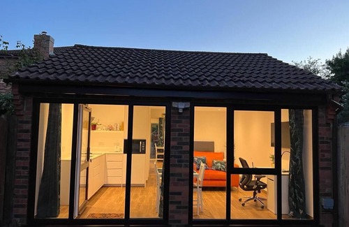Enjoy a stylish experience at this centrally-located place. This space is a double garage conversion with everything you might possibly need during your stay. It has a king size bed and a spacious en-suite bathroom, with a dedicated work place and kitchenette.