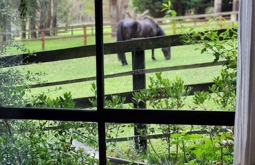 Set within a thirty-acre equine farm bordering the magnificent wilderness of Wollemi National Park there are many opportunities to soak up the peaceful serenity of our magical property. Enjoy the mature cold climate garden setting surrounded by sweeping lawns, open paddocks with large established native trees and a huge variety of birds all within a few steps.