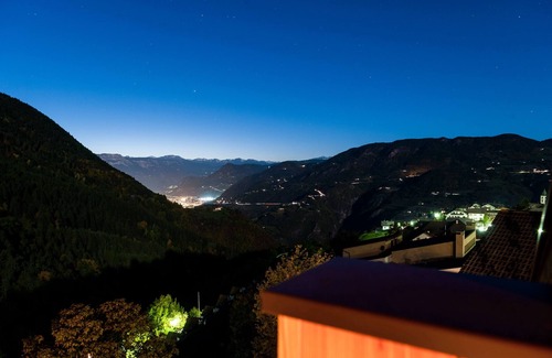 In the region of Latemar-Rosengarten near Steinegg (Collepietra) lies the beautiful holiday apartment "Sonnleiten der kleinen Bären 9" of family Mahlknecht and is perfectly suited for a family holiday for 5. The bright and child-friendly apartment consists of a living/dining area, a well-equipped kitchen with dishwasher, a bedroom with one double bed and one single bed, a children's room with two single beds (200x90 cm) for 2 persons, as well as a bathroom and can accommodate 5 people. Further amenities include Wi-Fi, a television, a baby cot, a cot and a high chair. A highlight of this apartment is certainly the private whirlpool on the south-facing balcony with a wonderful mountain view, relaxation is guaranteed here. The residence also offers a 200 m² wellness area with a bright pool with massage nozzles, 2 saunas (one of them hot), a hay bed and a quiet room. Those who want to enjoy the fresh air can do so in the large garden of the residence, where you can also barbecue, or take a walk in the surroundings. The nearest supermarket is only a few minute walk (200 m) away, and restaurants with local dishes can be reached on foot from the apartment. The area is known as the first "star village", therefore you will find a planetarium, a solar observatory and a planet path 13 minutes (9.5 km) by car from the village, where you can look at the stars and get a feeling for the vastness of our solar system. Lake Carezza is located 34 minutes (25.7 km) south of the apartment. The capital of South Tyrol, Bolzano, can be reached by car in 22 minutes (13,8 km) and the famous mountain group Catinaccio is 39 minutes (29 km) east of the village.