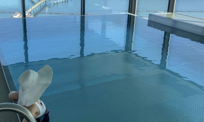 Indoor swimming pool that can be used all year round with a view of the Baltic Sea; Two saunas with views of the chalk cliffs; Luxurious amenities; Two bedrooms, two bathrooms; Guest toilet
