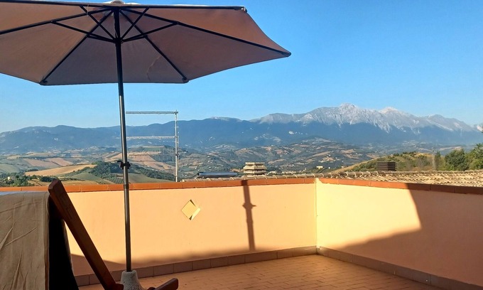 It has easy free parking outside and full access to the pergola with dining and bbq equipment for your use. There are stunning views at all angles, of the local villages set on rolling hills of the valle, calanchis and the magnificent Gran Sasso mountains.