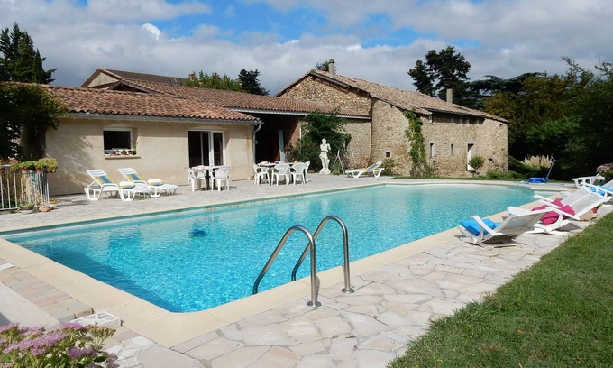 Stay in this authentic holiday home with a private swimming pool, nestled in a beautifully restored 12th-century building near Alixan, just 13 km from Valence. Surrounded by a vast wooded park, this quiet rural retreat is perfect for families and friends seeking comfort, charm, and nature. The home features a well-equipped summer kitchen, barbecue, ping pong table, and a spacious private terrace with garden furniture.