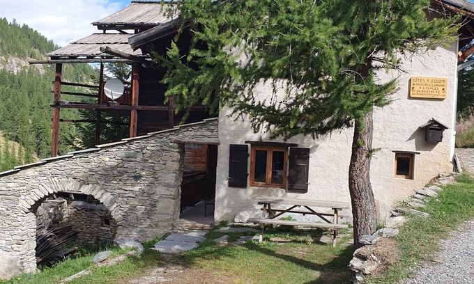 The house is an authentic Queyras farm, located in the hamlet of Chalp in St Véran. Its living space is about 75m2, it can accommodate 5 people. The house has an independent entrance and its own terrace facing south east. A large table is available outside.