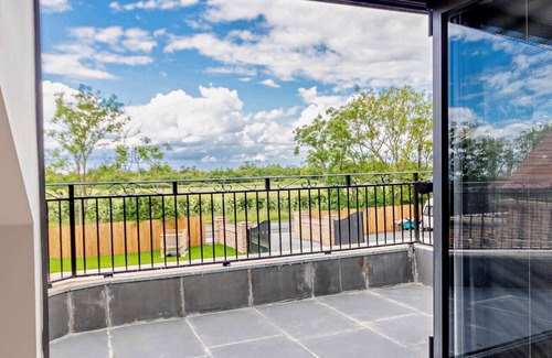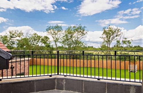 The private balcony invites you to enjoy your morning coffee while soaking up the tranquil surroundings and field views. You also have access to the shared gardens that surround the apartment.