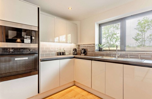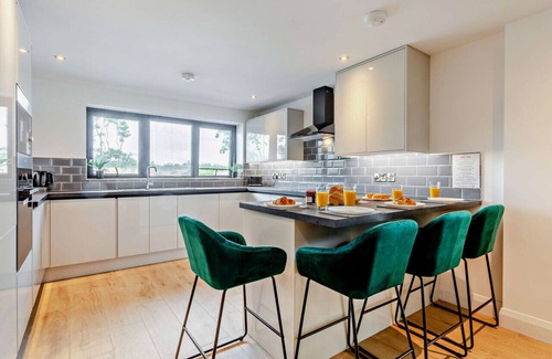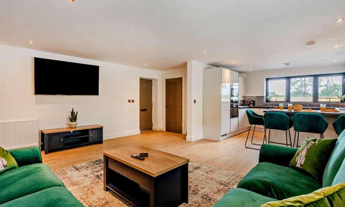 Dry Drayton, a quaint village in Cambridgeshire, offers a charming blend of rural tranquillity and proximity to lively attractions. Nature enthusiasts can explore the lush meadows and woodlands of Coton Countryside Reserve (4.5 miles), or the popular Milton Country Park (8 miles), both ideal places for peaceful walks, birdwatching, and picnicking. The bustling city of Cambridge, just 7 miles away, presents a wealth of activities for all ages to enjoy, from punting on the River Cam to exploring the historic colleges of the University of Cambridge. For family-friendly outings, the National Trust's Wimpole Estate (10 miles) offers expansive grounds, a working farm, and a grand mansion to tour. Shepreth Wildlife Park (14 miles) is also a great day out offering close encounters with a variety of animals. Local pubs and eateries provide a delicious taste of regional cuisine, making Dry Drayton an excellent base for discovering the charm and heritage of Cambridgeshire. This lovely and contemporary ground floor apartment can host up to six guests across three bedrooms and two bathrooms. The first bedroom has a king-size bed with en suite bathroom whilst the other two bedrooms boast double beds and use of a shared family shower room. The open-plan living, kitchen, and dining area has plenty of space to bring everyone together. The modern fully integrated kitchen is fully equipped, making mealtimes a breeze. Two comfy sofas allow for rest and relaxation in front of the large Smart TV, following a day exploring the local delights. The property has access to the shared garden that surrounds the apartments for you to enjoy at your leisure.