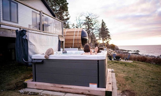 Located on Nova Scotia's South Shore, this beautifully renovated 2 bedroom cottage is within walking/biking distance of beautiful mile long Summerville beach. The open concept living and kitchen area with wall of windows offers expansive ocean views from practically anywhere in the house. Our back deck space is well furnished and is ideal for lounging, relaxing or casual dining. A private oceanfront hot tub , private barrel sauna and an outdoor fire pit are only steps away. Flat rocks on the ocean, accessible only from the property, provide a private sun deck ideal for sunbathing. Unwind and relax with breathtaking views and luxurious interiors.
