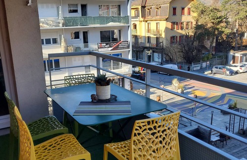 A few steps from the thermal park, equidistant from the various ski resorts, near the train station, with a view of the Aravis range, the accommodation on offer has been thought out so that you can stay there with complete peace of mind. Located on the 3rd floor with elevator, completely redone, it consists of 2 large bedrooms, a bathroom with walk-in shower, separate wc, a large living room with an office area, a large kitchen fully equipped and a terrace where you can eat. A blue parking zone surrounds the building and the sncf car park, a few meters away, is free. Bed and bathroom linen are extra: 60 euros for all occupants, for the entire stay. Price outside school holidays: 364 euros per week. Attention curists' rates outside school holidays: 285 euros per week. Full season rate (Christmas, New Year's Day, school holidays): 584 euros per week. Attention full season spa guests: 350 euros per week. A deposit check of 400 euros will be kindly requested.